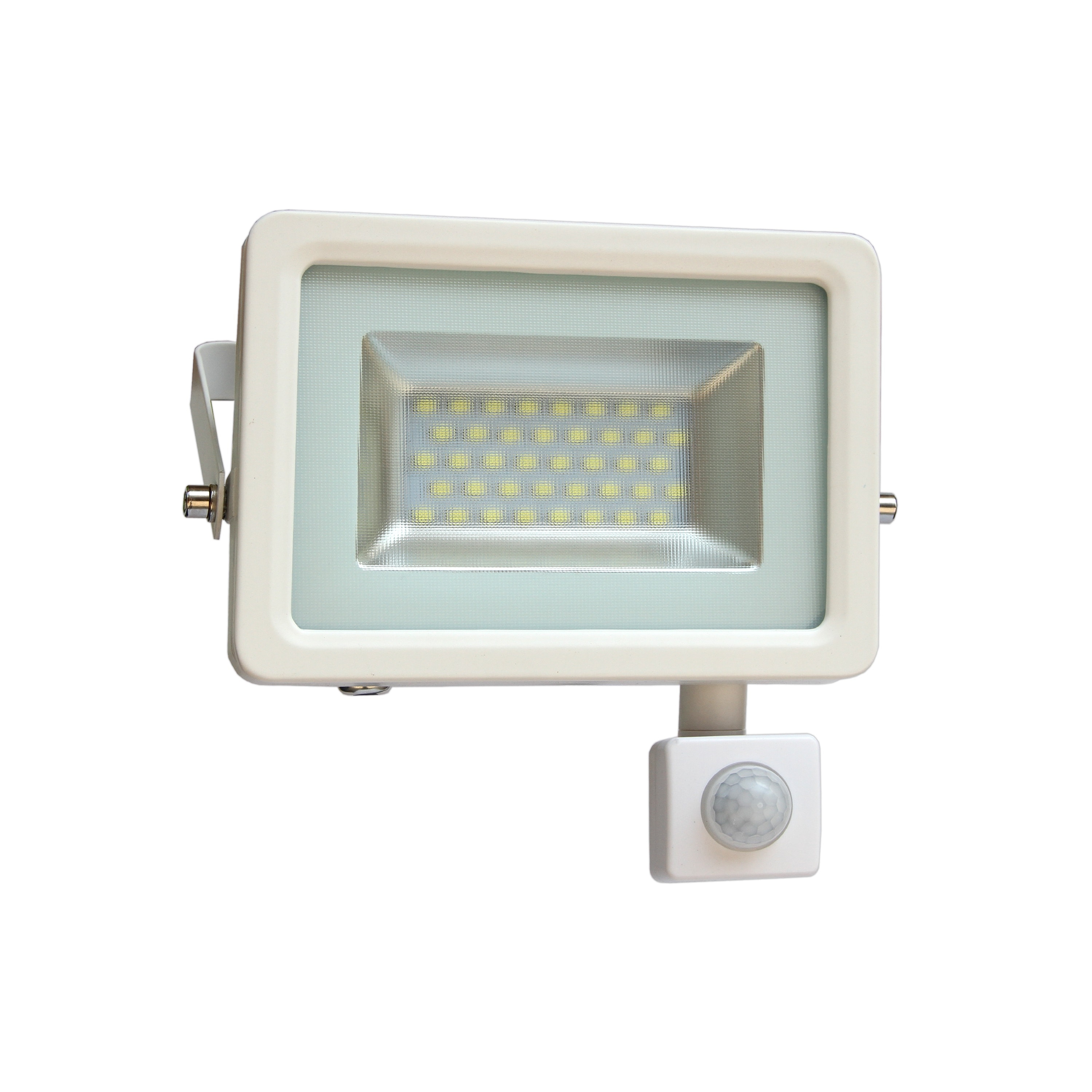 Biely LED reflektor s pohybovým senzorom 20W sa pomocou 3-žilového prívodného káblu napája priamo na prívod 230V. Vďaka svetelnému toku až 1800lm pri 20w výkone je ekvivalentom halogénového reflektora s výkonom 150W. Svojou nízkou spotrebou zabezpečuje úsporu až o 85% pri životnosti LED čipov až 25 000 hodín. Reflektor je osadený kvalitnými SMD čipmi, ktorými vďaka uhlu svietenia 120° zabezpečí dobré rozloženie svetla v priestore. Vďaka kvalitnému podaniu farieb CRi 80 je vhodný aj na použitie v interiéri.