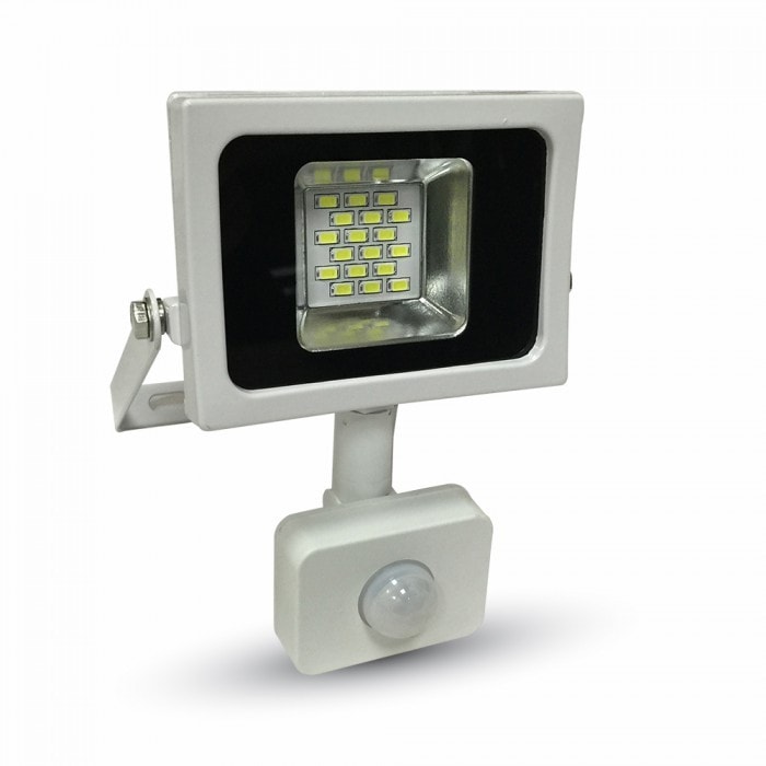 Biely SMD LED reflektor 10W s pohybovým senzorom vám vďaka 100° uhlu osvetlenia presvieti každý tmavý kút vášho dvora, záhrady, alebo iného priestoru exteriéru. Vďaka citlivému senzoru pohybu už viac nemusíte blúdiť v tme. LED reflektor sa aktivuje vždy, keď zaznamená pohyb, hoci aj vo vzdialenosti 11m od senzora. Naše reflektory majú dlhú životnosť a ľahkú inštaláciu.