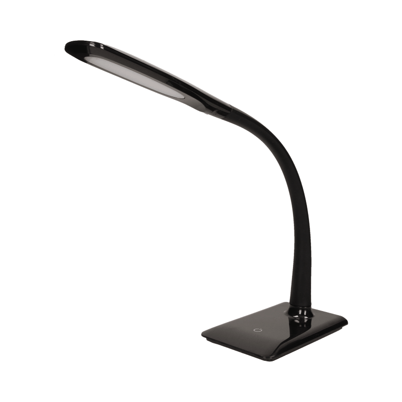 Čierna stmievateľná stolná LED lampa 7W UNIje vhodným doplnkom každého pracovného stola. Vďaka svetelnému toku 400 lm nahradí klasické halogénové osvetlenie s výkonom 35W. Teplota svetla 3000K je ideálnou voľbou pre osvetlenie stola, jedná sa totiž o teplú farbu, ktorá nenamáha oči ani pri dlhodobom svietení.