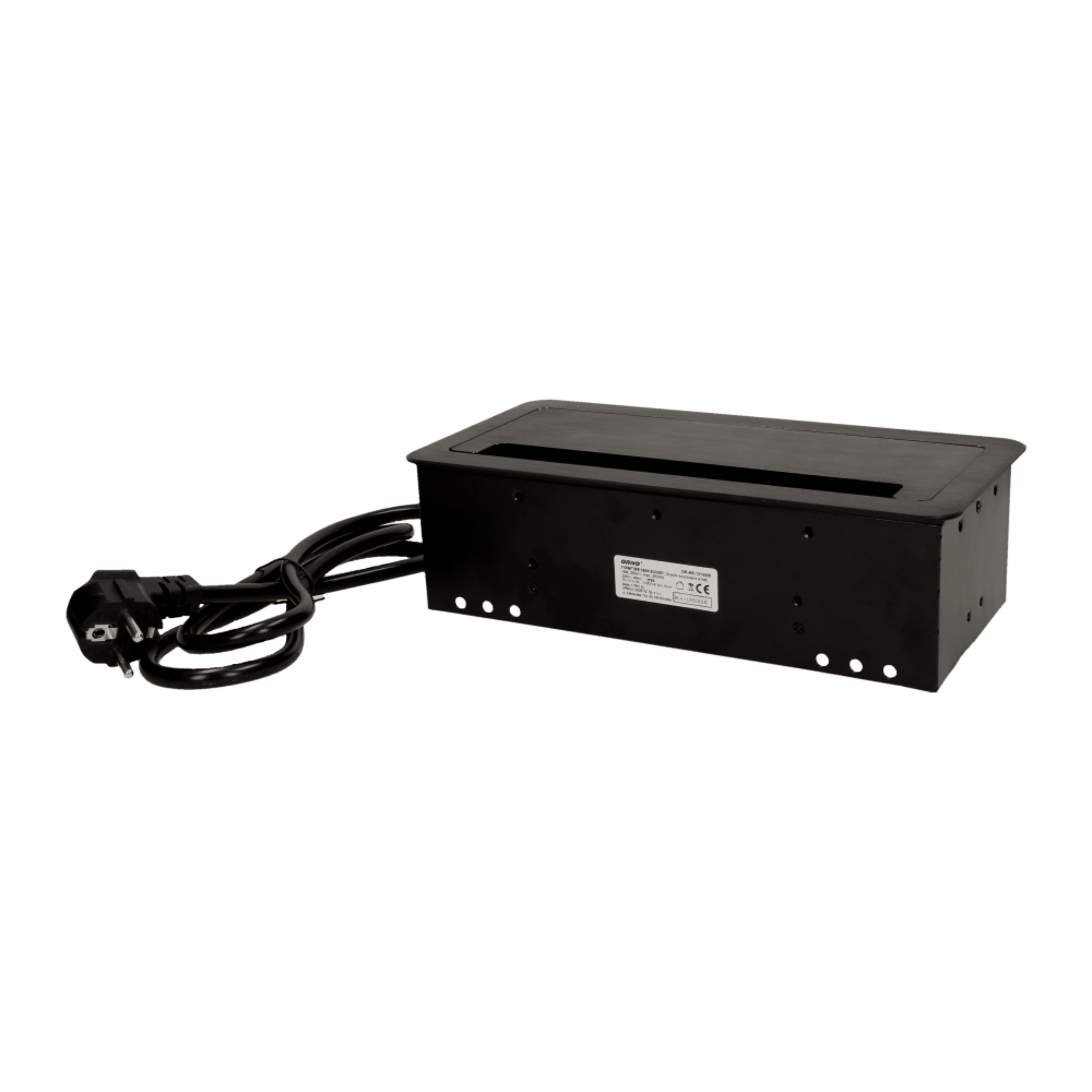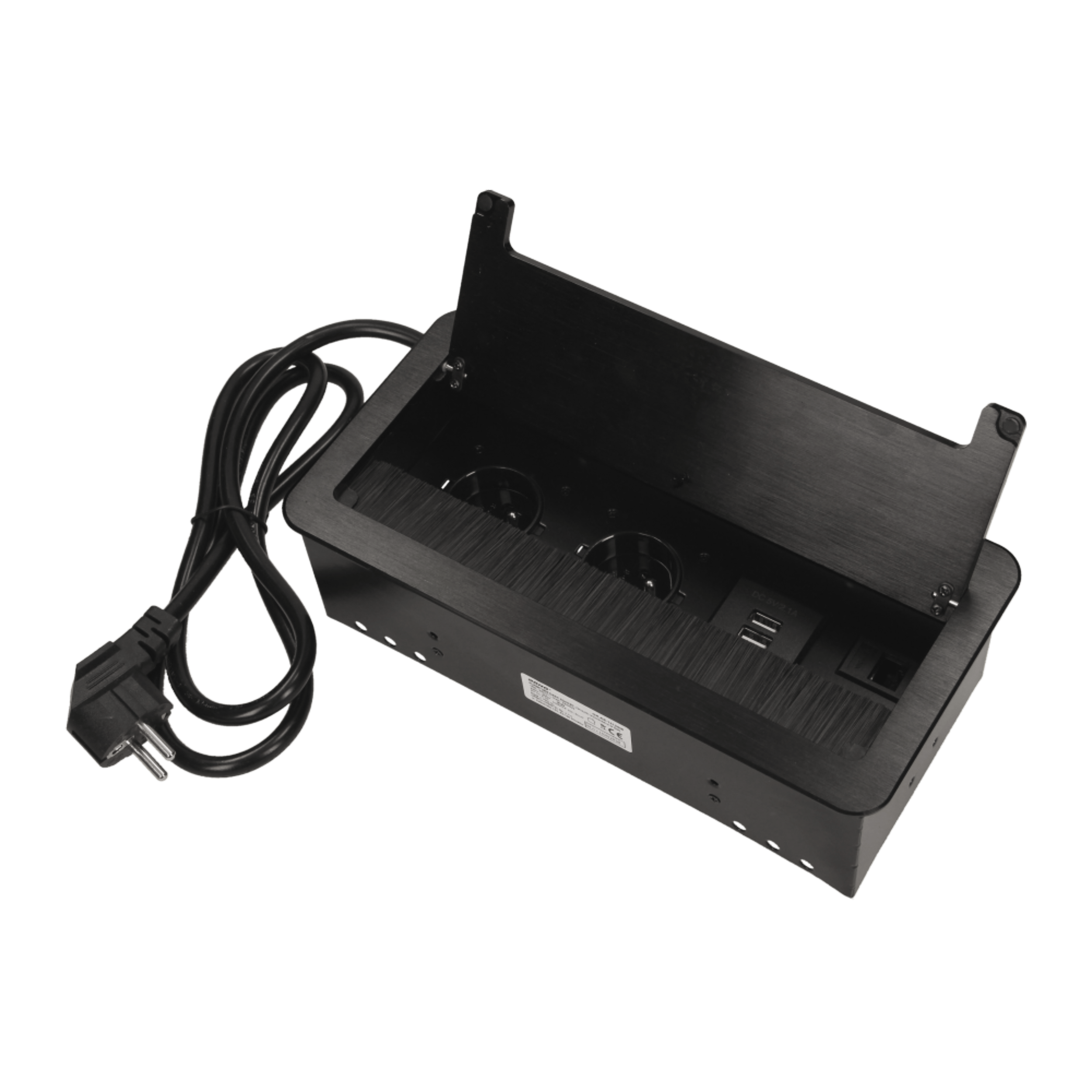 Čierna vstavaná zásuvka do nábytku 2x16A + USB + LAN s flexo káblom je určená na zabudovanie do nábytku, zvyčajne písacích a konferenčných stolov. Môže byť namontovaná vo vertikálnej aj horizontálnej polohe, čo umožňuje dobrý prístup do elektrických zásuviek. Zásuvka obsahuje 2 zásuvky so zemnením a zaťažiteľnosťou 16A, 2 USB nabíjačky s výstupom 5V 2,1A a 2 sieťové vstupy.