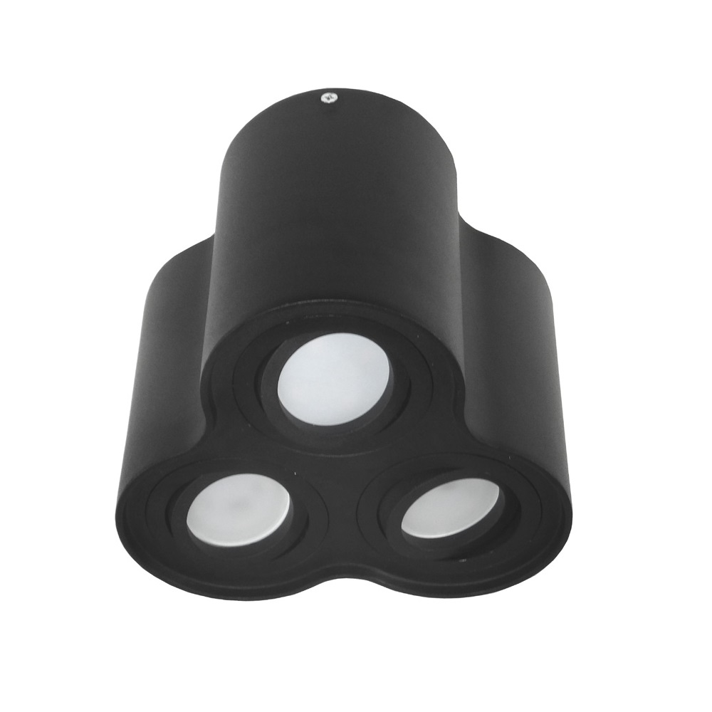 Čierny okrúhly tubus na 3xGU10 naklápateľný LONG TRIO je stropné svietidlo určené použitie s LED žiarovkami GU10 s napájaním na 230V.  Balenie neobsahuje led žiarovku. Tú si môžete vybrať v sekcii LED žiaroviek GU10.