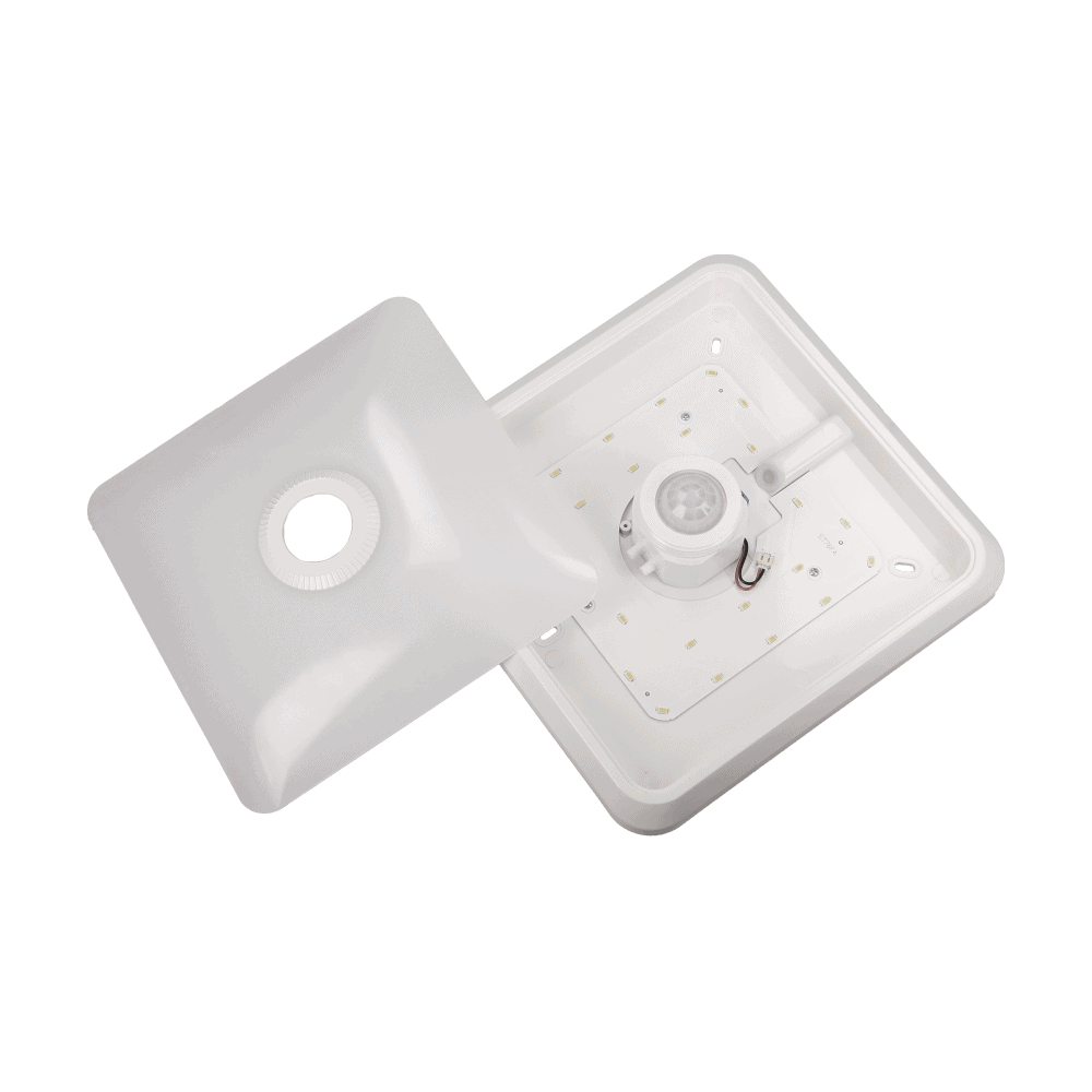 Hranatá LED stropnica s PIR senzorom pohybu 12W je efektívnou náhradou za klasické stropnice na žiarovky s pohybovým senzorom. Vďaka PIR senzoru sú vhodné aj na miestach kde mikrovlnné senzory nemôžu byť použité kvôli prítomnosti ľahkých stavebných materiálov ako sú sklo, drevotrieska, sadrokartón, cez ktoré je mikrovlnný senzor schopný snímať pohyb. Vďaka svetelnému toku až 800lm je ekvivalentom klasickej žiarovky s výkonom 60W. Svojou nízkou spotrebou zabezpečuje úsporu až o 85% pri životnosti LED čipov až 25 000 hodín. Lampa je osadená LED modulom s kvalitnými SMD čipmy, ktorý vďaka uhlu svietenia 120° zabezpečí dobré rozloženie svetla v priestore.