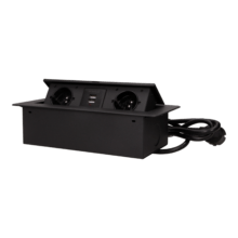Čierna výklopná zásuvka do nábytku 2x16A + USB s flexo káblom