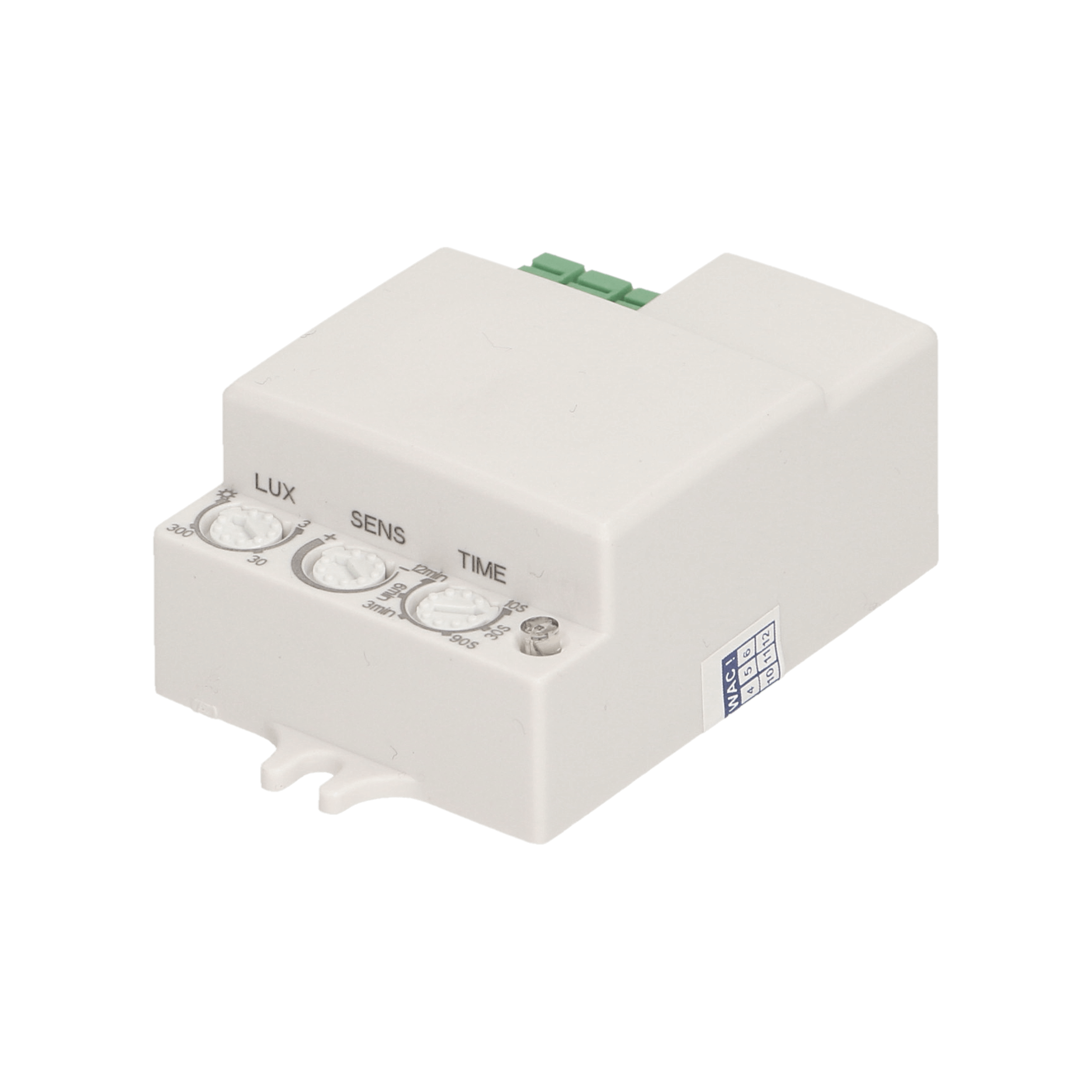 - Ovládač LUX slúži na reguláciu citlivosti na svetlo. Jeho nastavením zabránite, resp. povolíte zapnutiu svietidla počas dňa (šera).