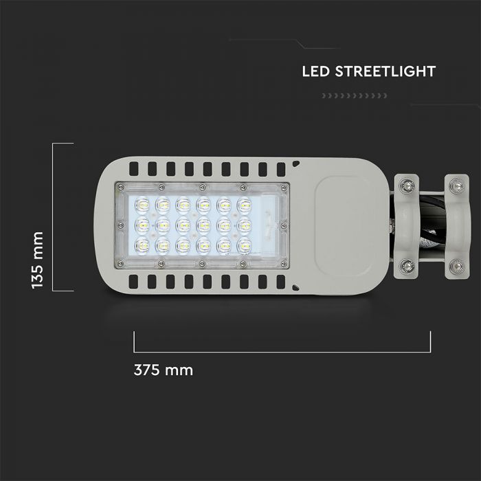 Pouličné LED svietidlo IP65 Samsung chip 30W 120lm/W spoľahlivo nahradí bežne používané pouličné svietidlá s ortuťovými výbojkami, sodíkovými výbojkami či úspornými trubicami. Odporúčaná výška inštalácie je 4-6m. Určené na výložník s priemerom 60 mm.