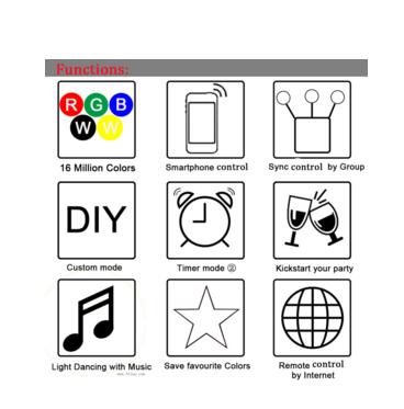 Smart RGB-W-WW ovládač (Wifi, iOS, Android) má tieto funkcie: