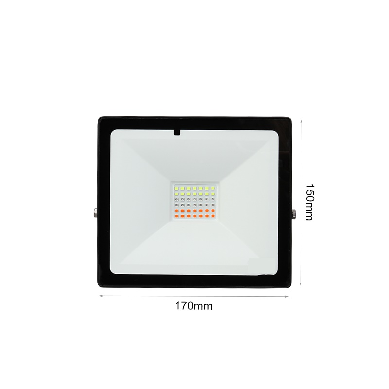 RGB LED reflektor 30W s IR diaľkovým ovládaním s uhlom osvetlenia 120° má sklenený kryt vyrobený z číreho skla s hrúbkou 5 mm, ktoré odolá aj extrémne vysokým teplotám, silnému UV žiareniu, či iným nepriaznivým poveternostným podmienkam. Svietidlá sú ohodnotené stupňom ochrany IP65. To znamená, že sú nielen maximálne bezpečné, ale aj prachu a vodotesné.