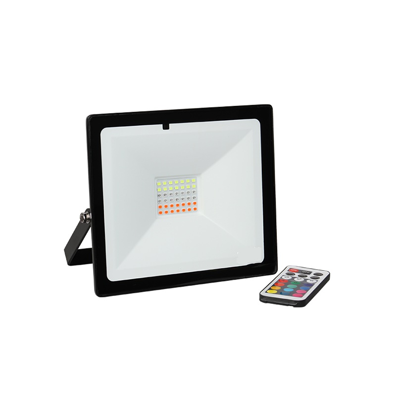 SMD RGB LED reflektor 30W s IR diaľkovým ovládaním je vybavený diaľkovým ovládačom , vďaka tomuto ovládaču si môžete nastaviť rôzne odtiene, intenzitu osvetlenia a dynamické módy veľmi jednoducho.