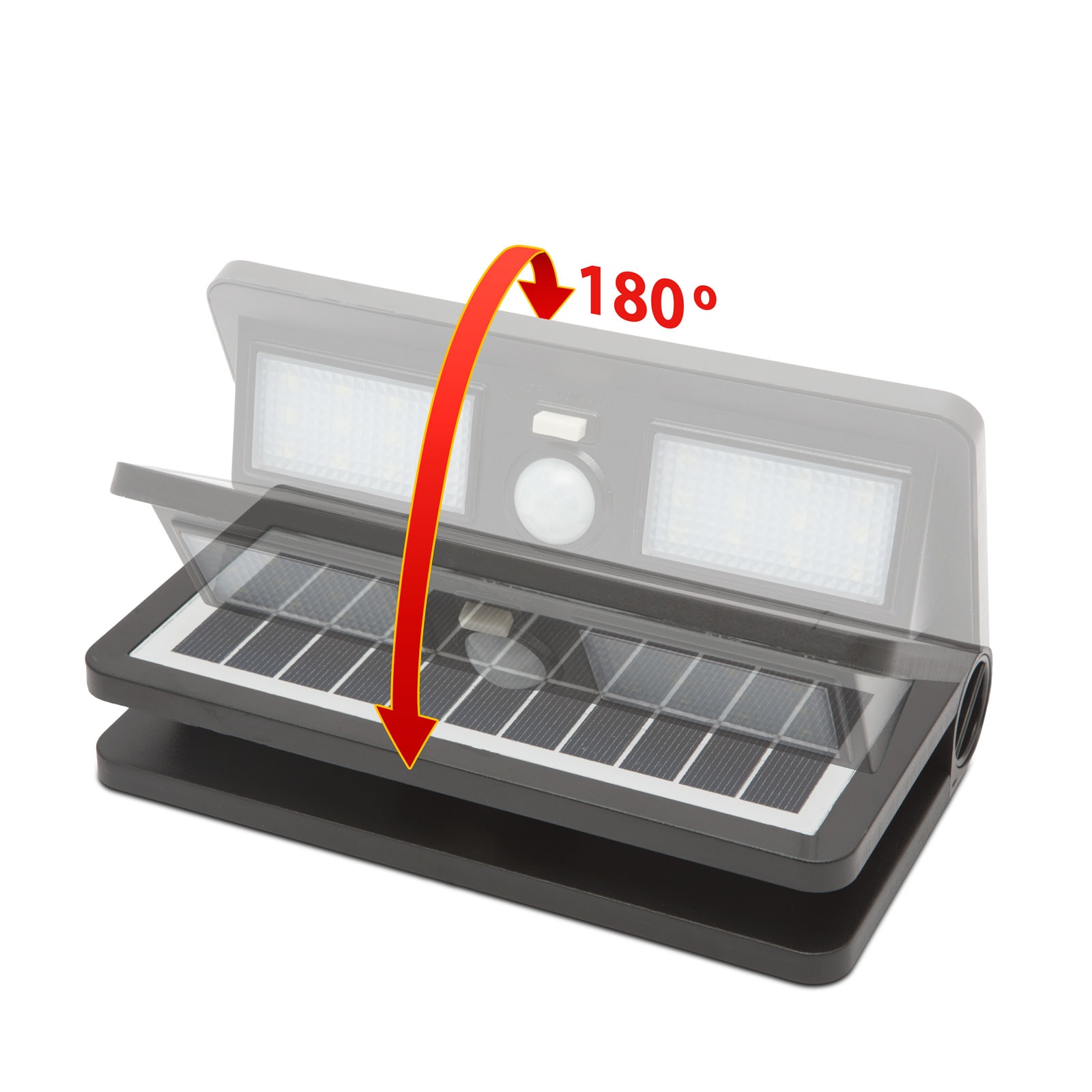 Svietidlo s vysokým krytím IP65 a jednoduchou montážou obsahuje PIR senzor s dosahom 0-8m a uhlom snímania 120° s odporúčanou výškou montáže 2,5m. Zabudované SMD LED čipy s výkonom 180lm nahradia bežné 15W halogénové svietidlo, pričom sú napájané z integrovanej batérie, ktorá sa dobíja zo zabudovaného solárneho panelu . Na plné nabitie je nutné mať 7,5 hodín slnečného svitu. Maximálna doba svietenia pri plne nabitej batérii je až do 4 hodín.