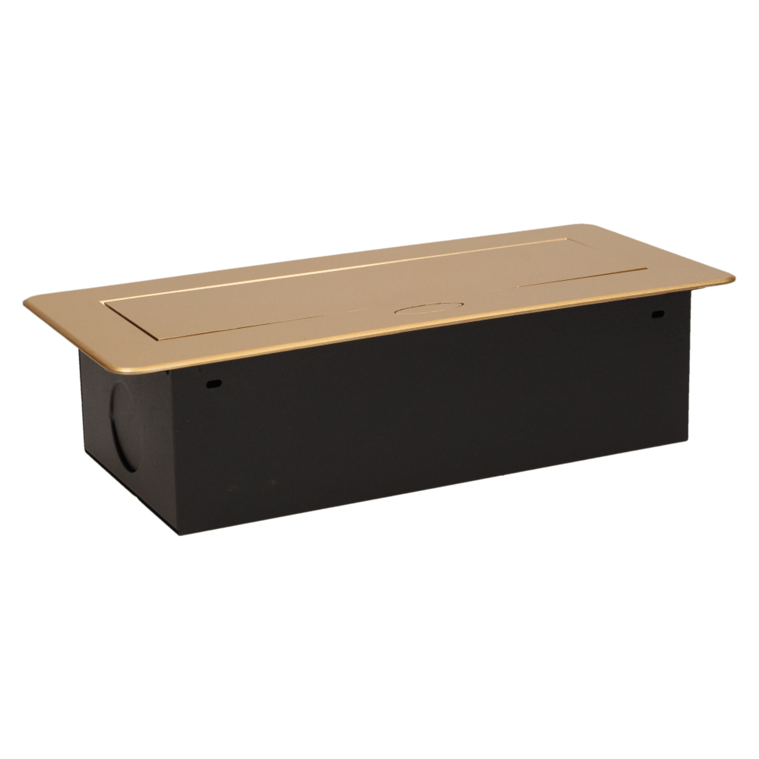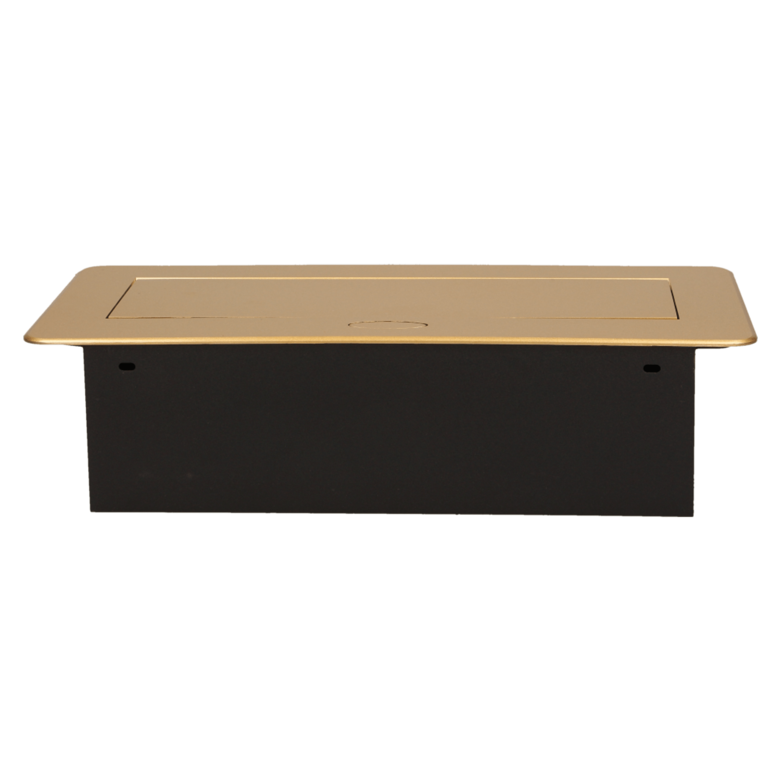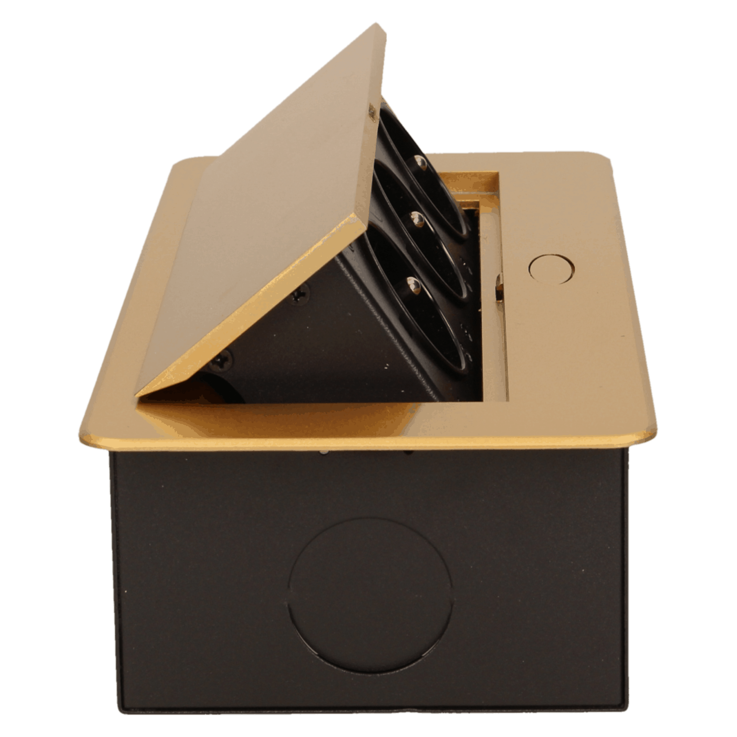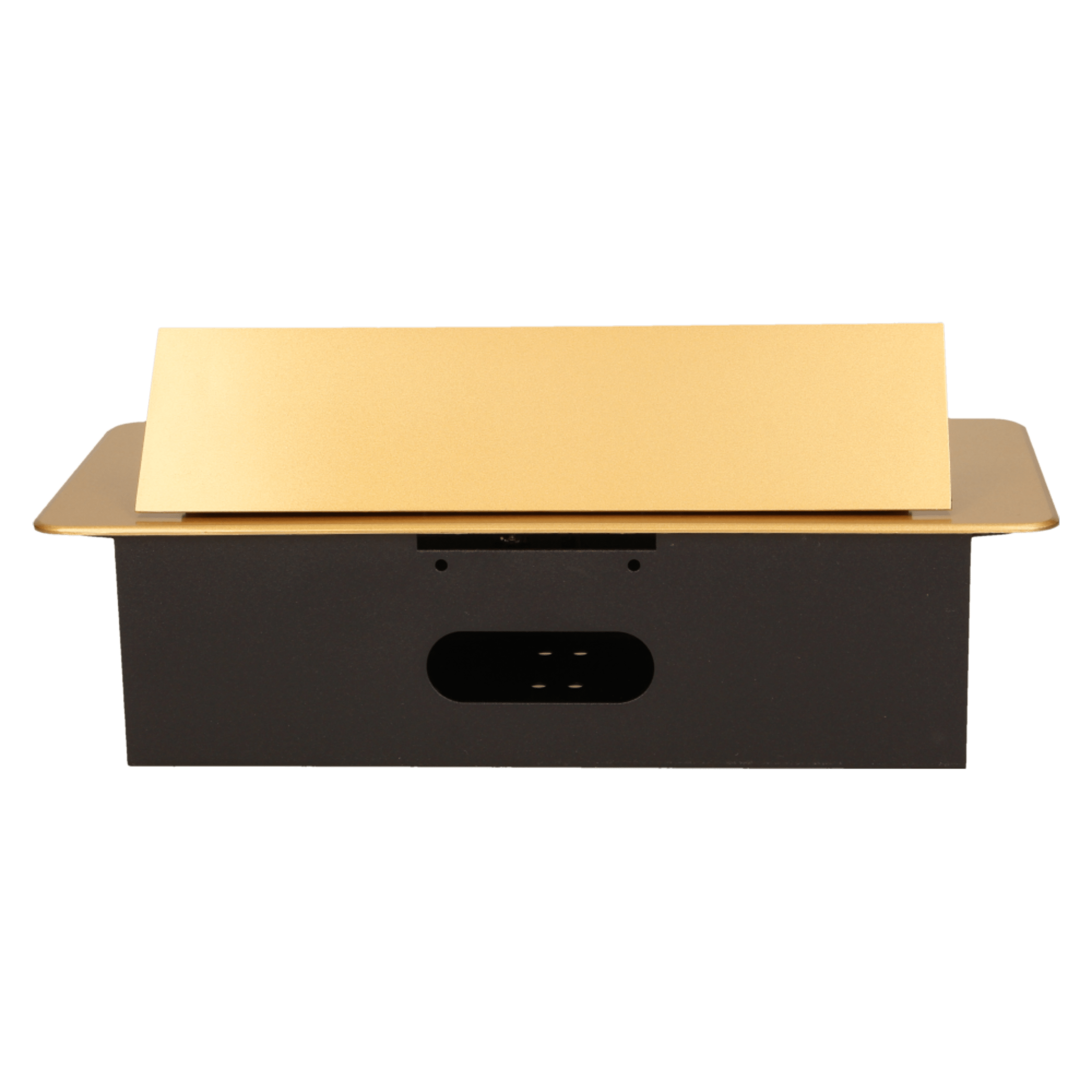 Zlatá výklopná zásuvka do nábytku 3x16A bez kábla je určená na zabudovanie do nábytku, zvyčajne kuchynských liniek, písacích a konferenčných stolov. Môže byť namontovaná vo vertikálnej aj horizontálnej polohe, čo umožňuje dobrý prístup do elektrických zásuviek. Zásuvka obsahuje 3 zásuvky so zemnením a zaťažiteľnosťou 16A.